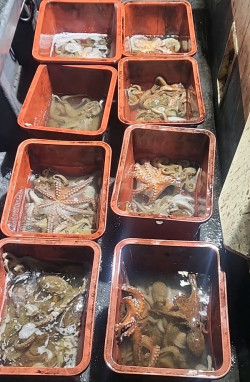9일 야간문어 조황입니다.2.9k,1.8k,1.8k,1.7k,1.5k,1.2k수온이 내려가니 덩치급들이 슬슬움직이네요.생초보조사님이 k오버 3수~ 사고 제대로 쳤습니다.아직 마리수도 심심치않게 나오고 있고 간간히 나오는덩치급들에 탄성이나오네요~다음주도 날씨가 영상10도를 웃도네요~큰추위가 오기전까지 야간문어 계속 이어가보겠습니다.내일 갑오징어 정상출항합니다.>갑오징어 야간문어 출조안내입니다<야간문어입출항시간 : 오후4시~밤12시 (유동적일수 있습니다.)선비: 8만원 ~식사없음~4인이상 출항합니다.갑오징어입출항시간 : 오전7시~오후3시 (유동적일수 있습니다.)선비: 8만원4인이상 출항합니다.13일 갑오징어 8자