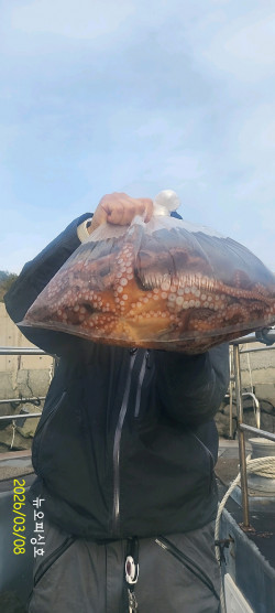 11분모시고 먼바다 문어출조 다녀왔습니다.간만에 봄날씨같은 기상속에서 즐낚하고 왔습니다.포인트마다 꾸준히 올라오네요~2.7k,k급2수 덩치급들은 많이 못잡았지만중치급들로 마리수 채